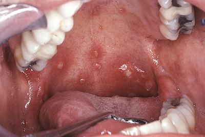 Il dottore ha notato anche una presunta fistola al palato duro e mi ha prenotato. Il dentista ha rilevato le gengive arrossate per causa del tartaro . Lo streptococco causa frequentemente di mal di gola soprattutto nei pazienti. Gabriele, ho notato mentre rideva che ha il palato bianco. Le aree più colpite sono le labbra, la lingua, il palato. La causa risiede nell'attività nociva che la placca batterica esercita sui tessuti orali.